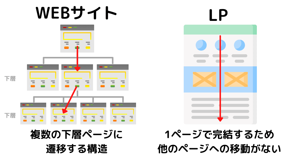 一方LPは、特定の商品やサービスに特化し、コンバージョン(問い合わせや購入等)を目的とします。