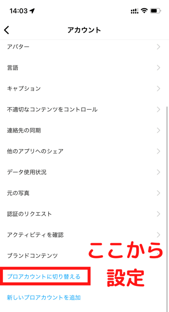 すぐに一般アカウントからプロアカウントへ変更を行いましょう。